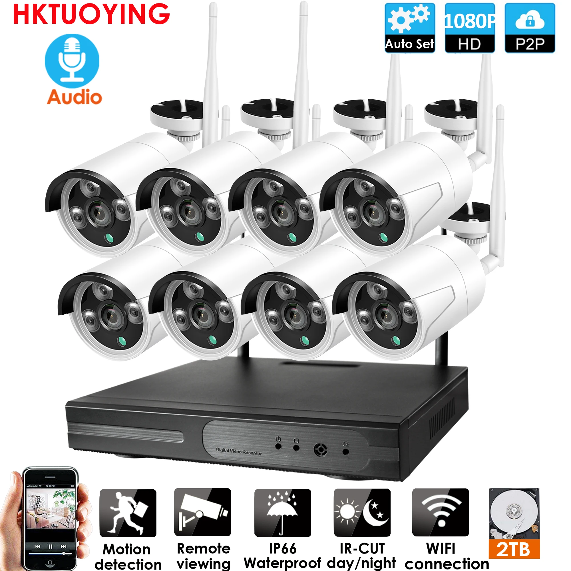 8CH Audio CCTV System Wireless 1080P NVR Outdoor indoor P2P Wifi IP CCTV Security Audio 2.0mp IP Ca